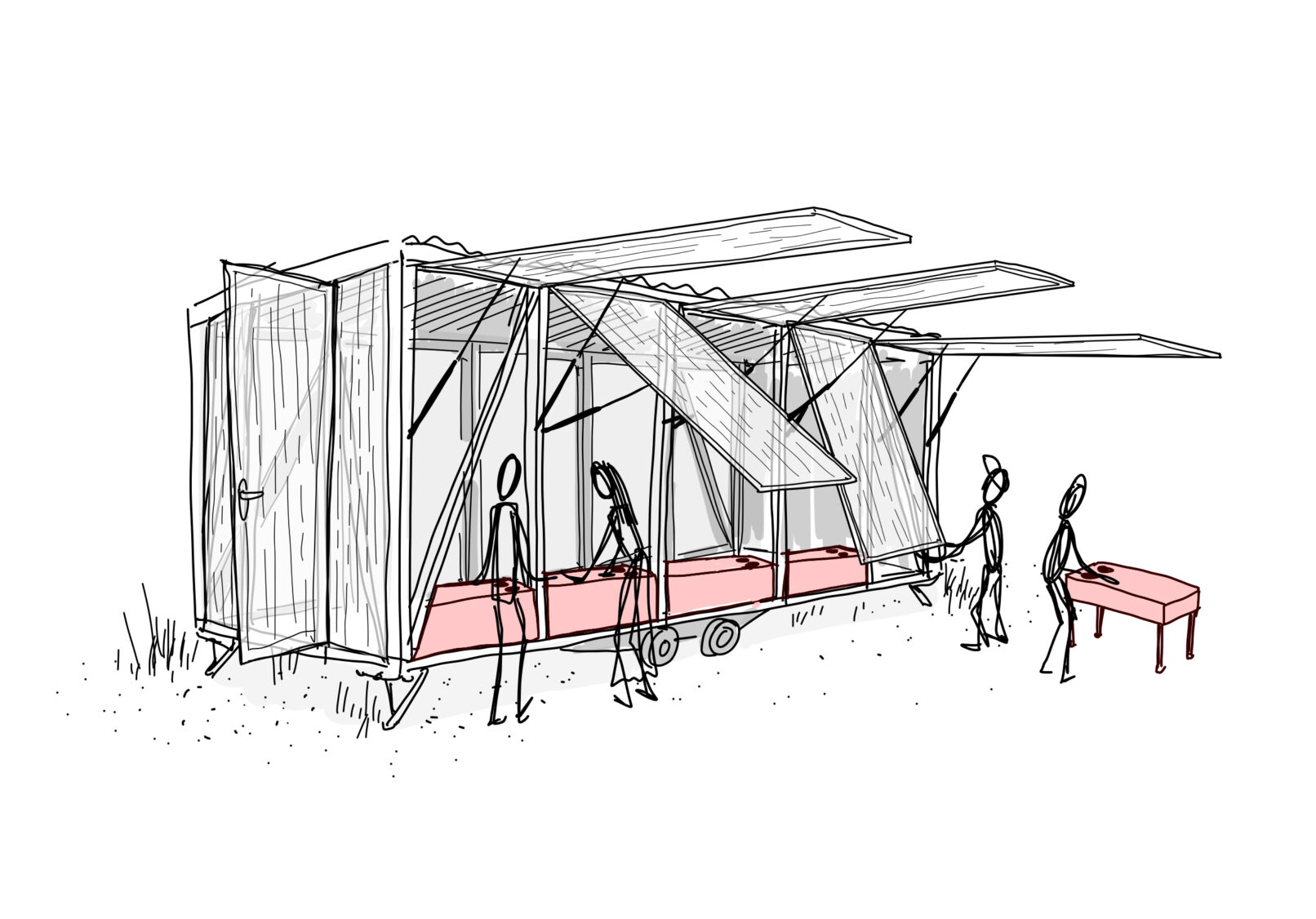Der sechs Meter lange Anhänger ist mit professionellen Kochstationen für vielfältige Zubereitungsarten ausgestattet. Renommierte Köchinnen und Köche aus der Region interpretieren traditionelle Lausitzer Gerichte neu und teilen ihr Wissen mit den Teilnehmenden. Ergänzt wird die mobile Küche durch Sitzgelegenheiten und eine kleine Bühne für ein abwechslungsreiches Rahmenprogramm.