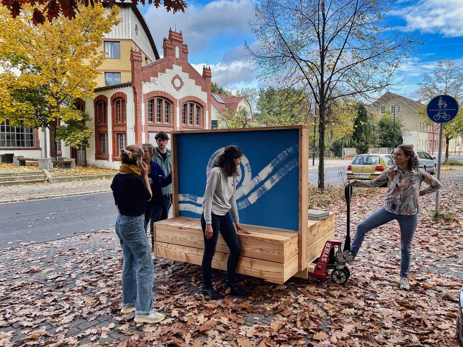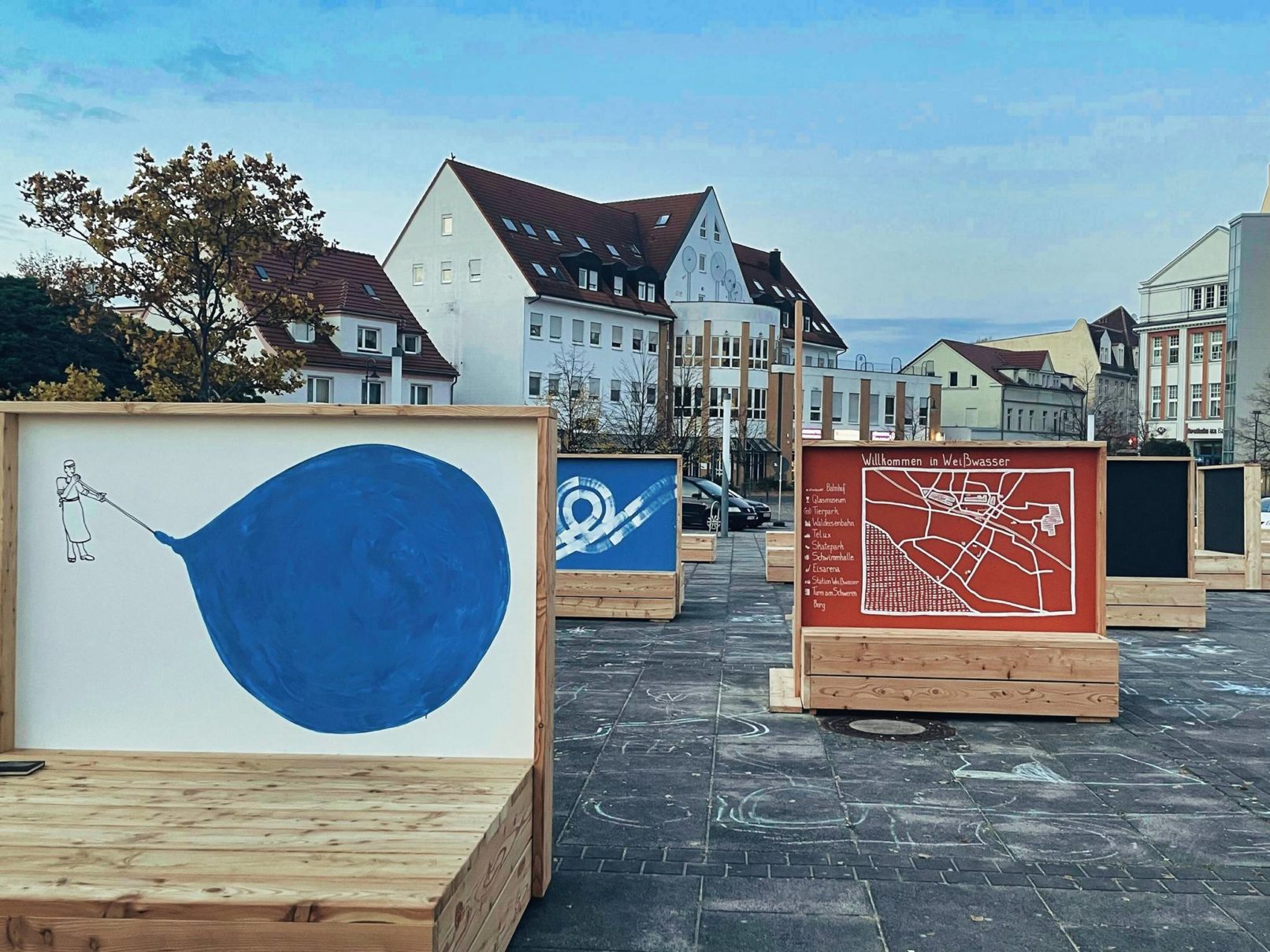Anfang Oktober fand auf dem Bahnhofsvorplatz der Stadt Weißwasser/O.L. das „Kultur-und Bau-Festival: Weisswassermachen Stadtraum Parcours“ statt. Unter Federführung des Kunst- und Architekturnetzwerks Constructlab und gefördert durch das Programm „Kulturland 2022, Sachsen als Bühne“ der Kulturstiftung des Freistaates Sachsen haben ca. 20 Künstlerinnen und Künstler aus mehreren europäischen Ländern, aus Sachsen, Berlin und Brandenburg in dieser Woche auf dem Bahnhofsplatz mobile Stadtmöbel gebaut. Das IRLR hat die Stadt Weißwasser beim Einwerben der Fördergelder sowie beim Projektmanagement und im Bereich der Produktion und Kommunikation des Projektes unterstützt.